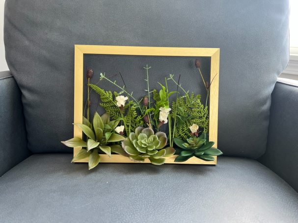 Next, we select artifical flowers to match the frame. Designs range from ornate to modern to bright depending on what the frame needs.