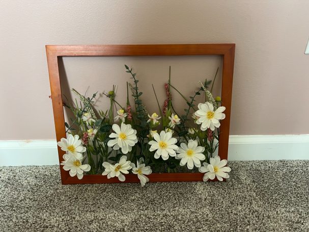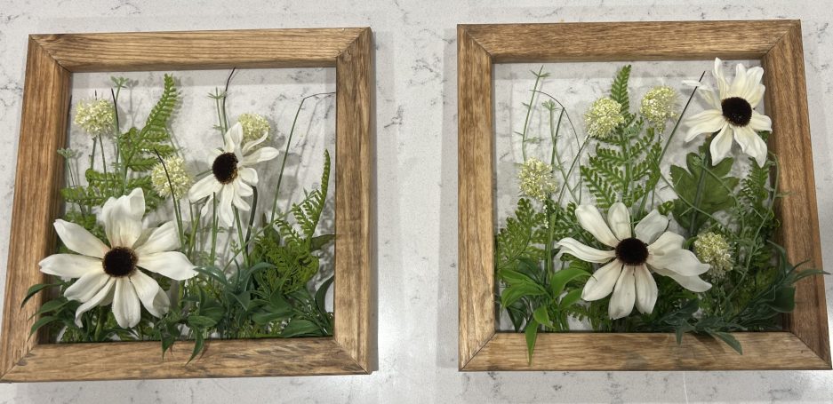 Next, we select artifical flowers to match the frame. Designs range from ornate to modern to bright depending on what the frame needs.